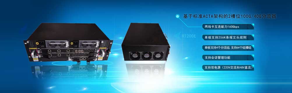 RT200設備是一款支持網絡行為審計系統、網絡內容審計系統和入侵檢測系統的高速流量預處理平臺。